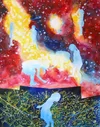 size is 40 x 50 inches… on the wall paintings take up approximately ten+ feet.